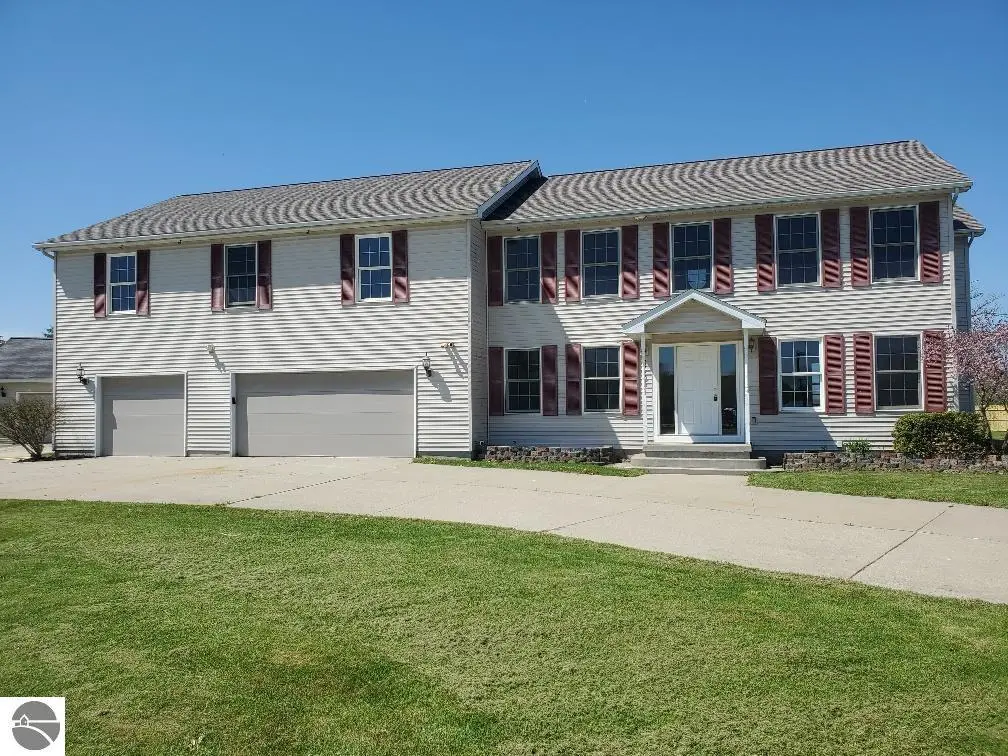 Very Striking and unique home with many recent updates including fresh paint, carpet, vinyl siding, newer plumbing & electrical, and more! Main level with living room, kitchen with new appliances, island, and breakfast nook, formal dining room, gathering room, office and half bath. Upper level featuring primary bedroom with full private bath and walk-in closets, 3 additional bedrooms, 2 additional full baths, and large gathering room with fireplace, balcony and additional media room/office/study. Attached 3 car garage plus detached 2 car garage. Fenced yard.