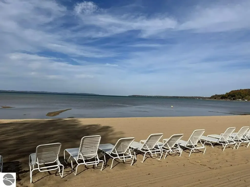 Resort rental condo in the heart of Traverse City's Miracle Mile! 200' of beautiful sandy Bay frontage with crystal clear water. This newly renovated building boasts an outdoor heated pool, sun deck by the Bay and a perfect location to start your daily adventures in northern Michigan. Furnished condo with new paint and blinds. Full kitchen. Views of the Bay and pool are just outside the kitchen window. 2024 Gross Income $25,000. Would be more but Sellers reserved time for personal use. Minutes to downtown Traverse City. Across the street from the trail system. Elevator, laundry, on-site rental management. Sorry no pets or self-rental such as airbnb. HOA $435/mo.
