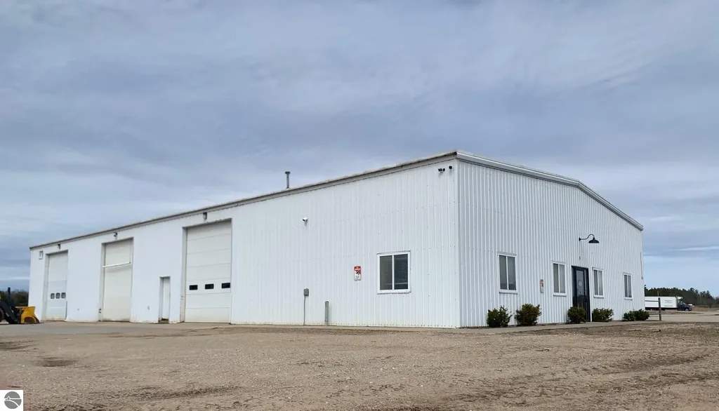 Large freestanding 7000+ sq ft building with 3 Bays, 14' overhead doors, and 16' ceiling height with 10 parking spaces.. Ceiling heaters, 3-phase electric, and new carpeting and freshly painted office space with 5 private offices, front desk area, bathroom and kitchen. Located on US-131 (a class A rd.) 450' frontage with lots of exposure - halfway between Kalkaska and South Boardman. NNN lease available immediately; minimum 2-year lease. Signage allowed.