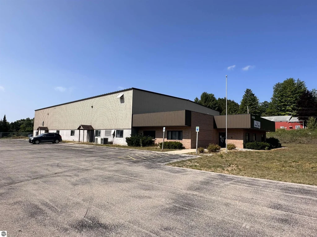 Highly visible industrial building with 310’ of frontage on US 31 in Interlochen available for lease. This 18,200 SF building features 3,200 SF of office space and 15,000 SF of warehouse space and sits on approximately 5.32 acres. The warehouse space features 28’ ceilings, 2 large grade-level overhead doors, 1 truck well with loading dock, large capacity 3-phase power, 2 overhead cranes, air lines for an air compressor, a large dehumidifier, and climate control system (radiant heating and air conditioning). The main office space includes 8’ ceilings, 6 private offices, a kitchen/breakroom area, and 3 bathrooms. The warehouse also has 3 offices and a conference room built into the SW corner of the building. There is also a large parking lot that can accommodate 50+ vehicles. This building is loaded with hard-to-find features and is in a great location. Available 10/1/25.