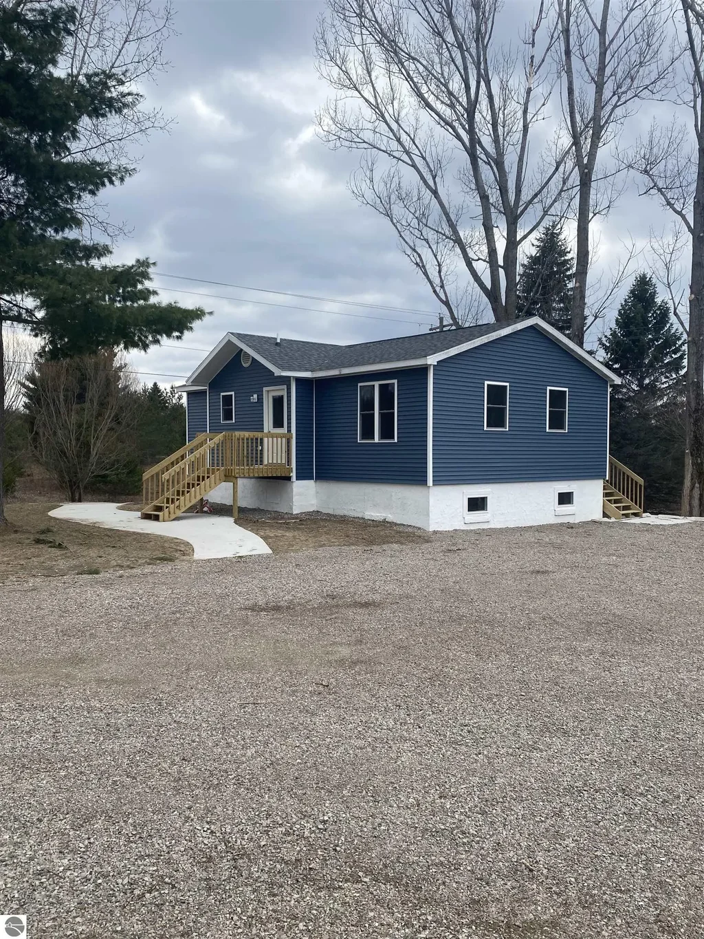 A really sharp, completely redone duplex, with two bedrooms and one bathroom in each unit. There are all new appliances, including washer & dryer for each dwelling. The view from the back is countryside with the lower unit enjoying a patio, while the upper has a brand new deck. Many options exist for this property including living in one and renting the other! You'll be only 3 1/2 miles from Bellaire, making this property conveniently located to all local amenities. Quartz counter tops and beautifully tiled showers add a touch of class to each dwelling. The 2nd bedroom in the lower unit is non-egress. The adjacent parcel has a 25 x 31 insulated pole barn that could be added for $40,000.