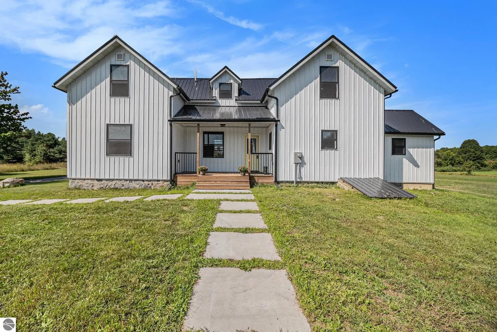 Welcome to this stunningly remodeled farmhouse, where historic charm and modern sophistication blend seamlessly. Nestled gracefully on 60 acres of gently rolling countryside, this home is surrounded by a harmonious mix of lush hardwoods, open fields, and a pond—an idyllic setting teeming with natural beauty and wildlife. Inside, the open-concept layout is both welcoming and refined. Original hardwood floors have been carefully restored, radiating warmth and character throughout. The living and dining areas and a main floor office boast high ceilings and expansive windows that bathe the space in natural light, creating an airy, inviting atmosphere. The heart of the home—the kitchen—has been thoughtfully redesigned with custom cabinetry and sleek quartz countertops, combining modern functionality with timeless appeal. Upstairs, you’ll find three comfortable bedrooms and a versatile bonus space at the top of the stairs—ideal as a playroom or additional office. Adjacent to the largest bedroom is a cozy lounge area, perfect for quiet relaxation or creative use. Outside, a classic two-story barn has been revitalized with a new roof, updated lighting, and new front and back slider doors for easy access and the seller just built secondary concrete walls in the lower lever for extra support. The land itself is a nature lover’s dream, complete with a spring-fed watering hole that draws in a variety of wildlife year-round. This extraordinary property offers the rare opportunity to enjoy the nostalgia of a historic farmhouse, paired with the luxury and convenience of contemporary design—all within a breathtaking, private setting.