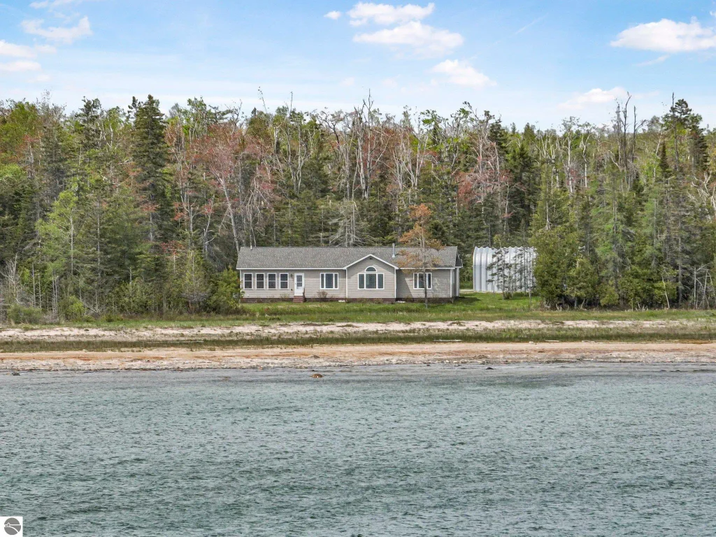 Escape the hustle and bustle to this hidden gem on the shores of Lake Huron. Nestled seamlessly into its natural surroundings with breathtaking sunrises, waking up to the sound of gentle waves and step on to your own private beach. The house is a peaceful retreat surrounded by lush greenery and attractive landscapes. The heart of this home is the open-concept living area anchored by a beautiful natural gas fireplace. Discover your own private paradise with this unique, one-of-a-kind property. Situated on one of the largest frontages on beautiful Lake Huron, this cute lakefront ranch home offers 268 feet of private shoreline. The east-facing property ensures stunning sunrises - relax on your own private beach where you can unwind to the soothing sounds of waves lapping the waterfront. Built in 2018, this modern home is surrounded by beautiful blue spruce trees which blend with nature, providing total privacy. Inside, the home features 2 bedrooms, two full & one-half bathrooms. The master suite located on the water side has its own private bath. The great room, dining room, kitchen, and master suite all offer breathtaking views of Lake Huron. The kitchen counter tops are finished off in Corian with custom cabinets. The kitchen island looks out into the great room with panoramic views of Lake Huron, perfect for entertaining. The adjoining full seasons room offers family and visitors a beautiful full view of the Lake and extra privacy. This room could be easily converted to a third bedroom. The property includes a small pole barn equipped with electricity and remote overhead door. Perfect for storing water toys and garden equipment. This all-weather, low-maintenance home requires minimal annual upkeep, allowing you more time to enjoy its beauty. Located 20 miles south of Cheboygan, you'll have easy access to the town's many amenities, including restaurants, shopping, theatre, library, & beaches!
