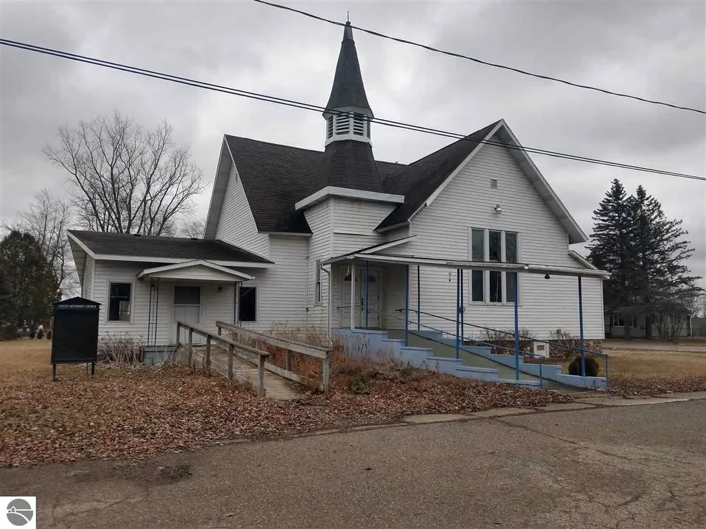 Approximately 3000 sqft building a couple of blocks from of well traveled M-65 and just six miles from US-23! Past uses for this space has been a church and most recently a printing company. Possible commercial and residential use could be available with township/county authorization. The building features a large 44x31 room, large kitchen, bathroom, newer windows, water tanks for holding municipal water, city sewer, 2 access ramps, (2) L/P F/A furnaces, lots of storage space and a huge corner lot.