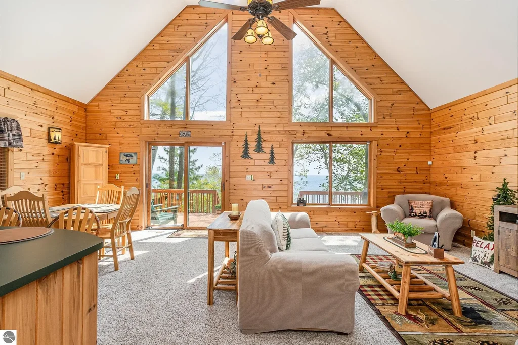 Lake Huron Luxury Retreat Welcome to your private oasis on the pristine shores of Lake Huron. This stunning home is perfectly nestled on a wooded bluff with private steps leading down to a sugar-sand beach—offering breathtaking views and the soothing sounds of waves year-round. Inside, you'll find a beautifully designed open-concept great room with soaring ceilings and expansive windows that flood the space with natural light and showcase the panoramic lake views. The spacious layout is ideal for relaxing or entertaining in style. The primary suite, located upstairs, offers a serene escape complete with a private en suite bath. A generously sized second bedroom on the main floor comfortably accommodates two queen beds, making it perfect for hosting family or guests. Lovingly maintained as both a cherished family retreat, this property offers luxury lakeside living. Enjoy nearby amenities including the golf courses, charming coastal towns, and endless outdoor recreation. Whether you’re seeking a personal sanctuary or second home, this Lake Huron gem delivers unforgettable beauty and exceptional value.