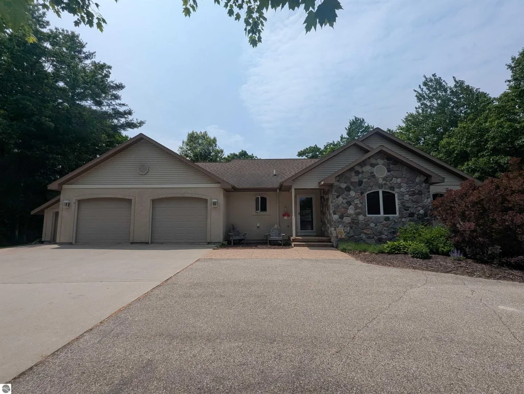 A stunning property awaits with this secluded oasis! Sitting on just over 8 mostly wooded areas, this property offers very high levels of comfort, space, storage, and functionality! The gorgeous home features four bedrooms, three bedrooms, and so much more! The main level offers two bedrooms, including a spacious primary bedroom that has a walk-in closet and private bath, a nicely open kitchen/dining area that overlooks the large living room w/ a gas fireplace, and main level laundry! The walk-out basement has two additional bedrooms, full bath, a beautifully done family room with in-floor heat, custom built mini-bar area, plenty of storage, and a door leading out to a large fenced in yard! Outside of the home features the already mentioned fenced in yard, and an expansive multi-level deck that overlooks the yard. For storage, there's a 3 car attached heated garage w/ a stainless steel sink and a massive detached outbuilding that has a 35x28 three car attached area w/ a 40x60 pole barn heated workshop attached to that offering large overhead doors and all one's storage dream space! Located along a blacktopped road and not far from M-65 for added convenience while still maintaining that secluded feel