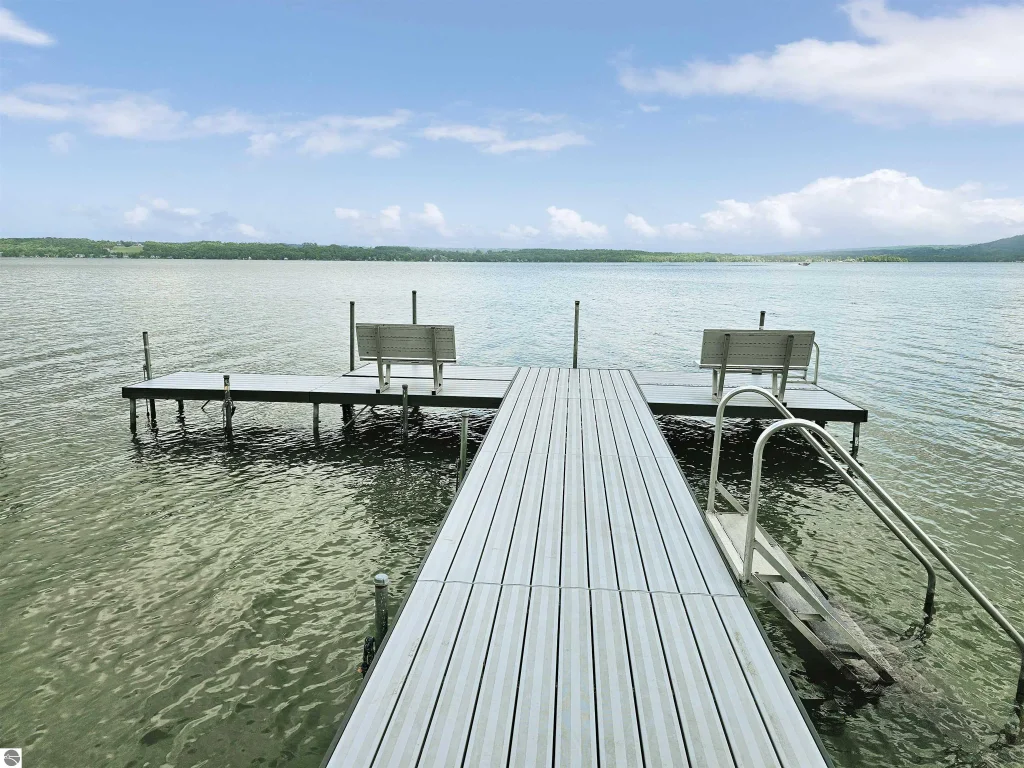 Discover the perfect Up North retreat on the pristine shores of Lake Leelanau. This beautifully updated home offers private waterfront, ideal for swimming, relaxing, and soaking in the lake life. Enjoy the benefits of a shared 120' community dock with boat slips and sandy swimming areas, all within the Rustic Resort development featuring 475 feet of total shoreline. Inside, the home blends modern updates with classic cottage charm, offering a warm and inviting atmosphere. Whether you're looking for a personal getaway or a property to share with family and friends, this home is ready to enjoy. Don’t miss your chance to own a slice of Lake Leelanau paradise.