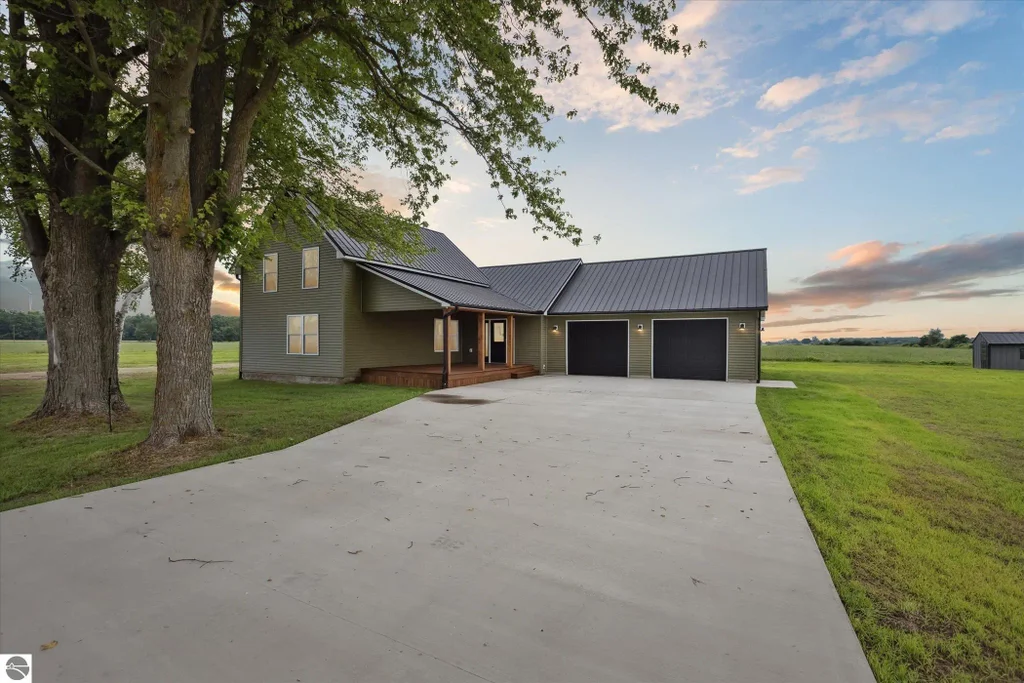 Welcome to 4798 N. Loomis Rd. Freshly built from top to bottom, this one-of-a-kind farmhouse offers a spacious layout with over 2,000 square feet of modern living space on 2.25 acres. 3-bedrooms and 2.5 bath with first floor primary suite and walk-in closet, large kitchen with quartz features oversized island and pantry. Recessed lighting and luxury vinyl plank flooring throughout the main and upper level, home/garage and crawl have been spray foamed for energy efficiency, expansive 21' x 14' covered front porch with TV hook up for outdoor entertainment, textured designer steel roof on home and barn(sides), 12' x 12' back porch with beautiful country views. Property features 36' x 23' outbuilding with garage door, 12' x 8'' matching chicken coop. Finished garage with direct access. Everything this home has to offer is new, no detail has been spared. Split is available and a survey is on file.