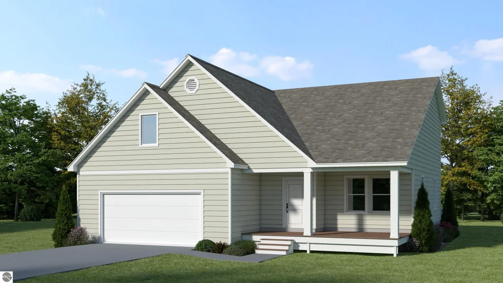Welcome to 2848 Ruby St., nestled in the highly sought-after Emerald Hills neighborhood of Traverse City, MI 49684. This under-construction home offers an exceptional blend of modern design and convenience, with a guaranteed completion date October 2025. Situated in an established community, residents benefit from a private gate providing direct access to nearby shopping and dining options, while the vibrant downtown Traverse City is just minutes away, offering a plethora of cultural and recreational activities.This thoughtfully designed home features a main floor primary suite with a private bath, a spacious kitchen boasting a large island perfect for culinary endeavors and entertaining, and a bright dining area with a sliding door leading to the rear deck, inviting ample natural light. The expansive living room boasts vaulted ceilings, enhancing the sense of space and openness. Upstairs, two additional bedrooms are complemented by a loft area and a full bath, providing versatile living spaces. A main floor laundry room adds to the home's practicality. The full, unfinished basement is pre-plumbed for an additional bath and features egress windows, offering the potential to add approximately 800 square feet of living area. Outdoor living is enhanced with a front covered porch and a rear deck, while an attached two-car garage provides secure parking and storage.Expertly crafted by Great Lake Construction, this home offers "it's all included" pricing, ensuring no hidden costs and more money in your pocket. Their "Guaranteed On Time" commitment allows you to plan your move with confidence. Additionally, this property presents the best value in the neighborhood, offering pre-construction pricing that makes it an outstanding investment opportunity. Please note: Finishes and colors may vary. Contact sales for detailed information.