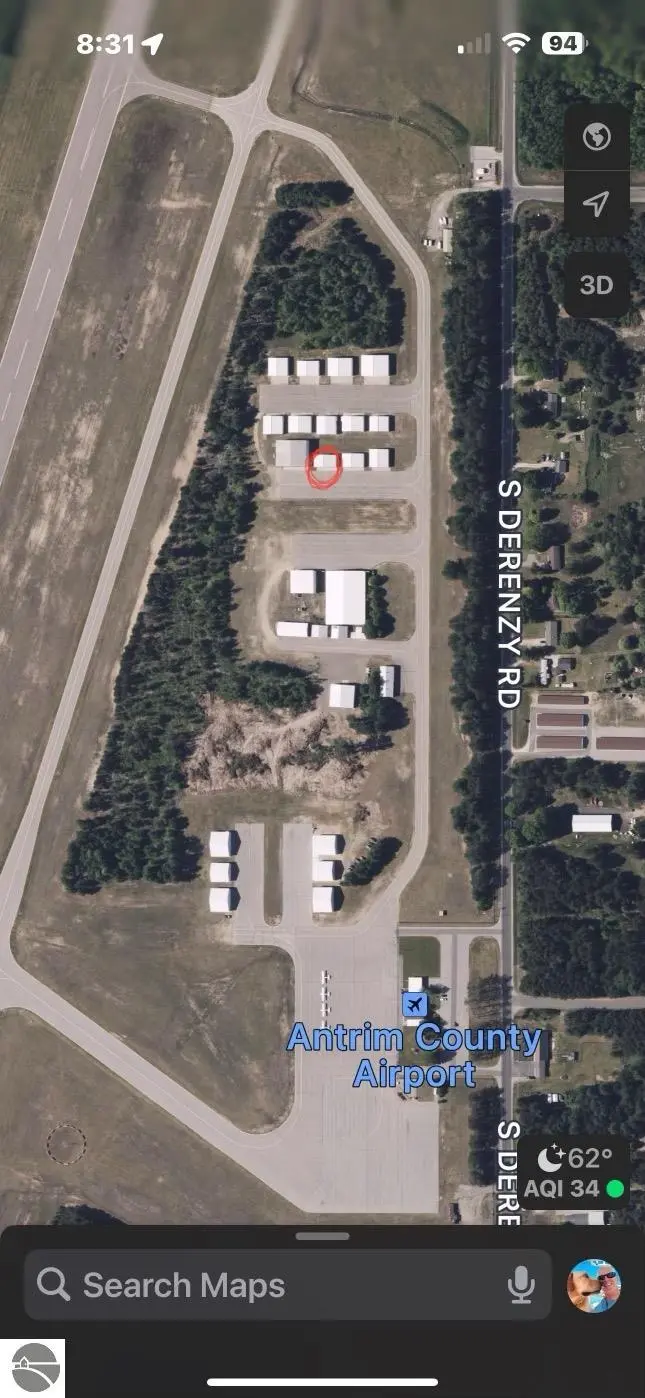 Airplane hanger pole barn at Antrim County Airport. It is a 50x36 pole building with 14 ft ceilings with electric and water, a large bifold door 40x13ft, a 9x9 overhead door, and a service door. You are buying a hanger and own the building and will take over the transferable land lease to Antrim County (Please see attached copy of the lease).