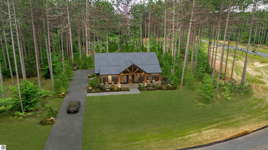 Welcome to Cascade Trail, a rare new construction opportunity nestled among the towering red pines of Long Lake Township, just minutes from downtown Traverse City. Set on a private 1-acre wooded lot, the Timber Cottage blends modern comfort with rustic charm in one of northern Michigan’s most desirable new developments. This thoughtfully designed home offers 1,793 square feet of main-level living, with three bedrooms, two full bathrooms, and a full unfinished basement ready for future expansion. Highlights include a vaulted great room with exposed timber beams and a cozy gas fireplace, a spacious kitchen with a center island and walk-in pantry, and a luxurious primary suite with a spa-style bath and oversized walk-in closet. Covered front and rear porches provide ideal spaces for relaxing or entertaining in the peaceful forest setting. Located in the new Cascade Trail community, the property features paved roads, underground utilities—including natural gas and high-speed cable—and is just a short walk to Westwoods Elementary. With nearby public lake access, hiking trails, and downtown Traverse City just minutes away, this is a rare chance to enjoy nature, privacy, and convenience in one complete package. Early buyers have the option to select finishes and personalize design elements—reserve your Timber Cottage today.