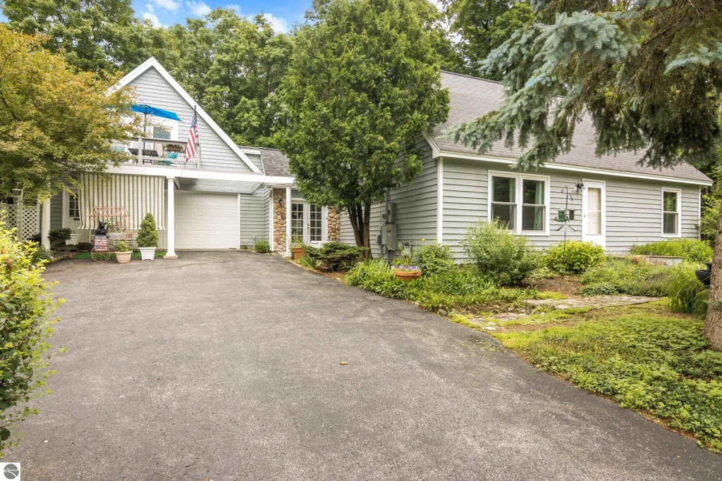 Nestled in the heart of Glen Arbor Township, just minutes from charming downtown Glen Arbor, this beautifully maintained 4-bedroom, 3-bathroom home offers the perfect blend of comfort, privacy, and versatility. Set on a serene lot, the property features lush landscaping that creates a backyard oasis perfect for relaxing or entertaining. Inside, enjoy an open-concept layout with vaulted ceilings, stunning tongue-and-groove woodwork, and abundant natural light. The lofted primary suite offers privacy and charm, overlooking the spacious living area below. Recent updates provide peace of mind and energy efficiency: New roof & garage door (2016), New furnace (2017), New well tank (2022), New windows with lifetime warranty (2025), Natural gas ventless garage heater (2024), A whole-house generator ensures you're never left in the dark, and the clean, dry Michigan basement provides additional heated storage. Enjoy the bonus of a 1-bedroom, 1-bath carriage house apartment with separate entry—ideal as a short-term rental, long-term lease, or guest quarters. Generate income to offset your mortgage or rent out both units for investment potential. Additional features include a 2-car attached garage, central A/C, and a 7’ x 18’ greenhouse—perfect for year-round growing and hobby gardening. Whether you're seeking a private full-time residence, vacation getaway, or income-producing property, this Glen Arbor gem checks every box.
