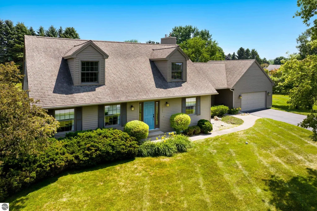 Welcome to the beautifully maintained two-story Cape Cod style home on Old Mission Peninsula offering 5 spacious bedrooms and 3 baths, perfectly nestled on a large, lush lot with shared waterfront access to Grand Traverse Bay. Enjoy partial views of the bay and Power Island. The access to West Bay offers an opportunity for boat hoist privileges and private parking easement. The home provides a cozy family room and a formal living room each equipped with its own gas fireplace. From the family room step out to a private patio area, perfect for outdoor dining or quiet mornings. Large windows throughout the house bathe each space with natural light. Large basement for potential living space or plenty of storage. This is a rare opportunity to enjoy the lifestyle of Grand Traverse Bay just minutes from downtown Traverse City. Measurements are approximate and taken from tax information, buyer to verify. Agent to be present at all showings.