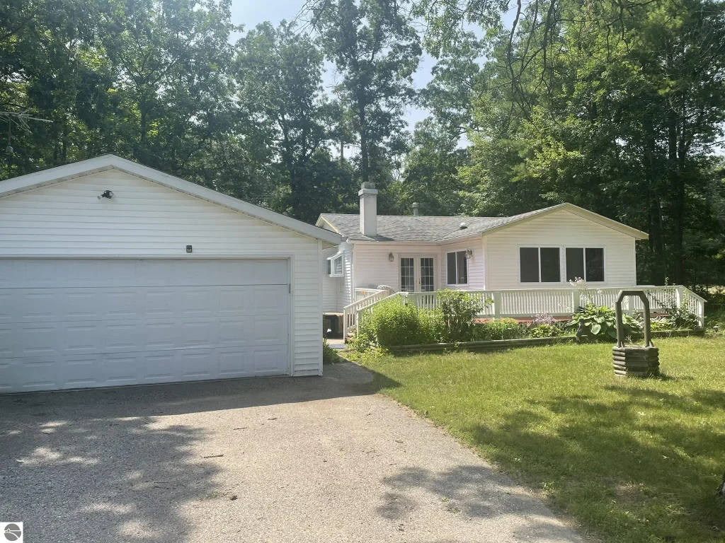 2 bedroom, 2 bath approx. 1570 sq. ft. home with attached two car garage located about 10 miles north of West Branch and close to lakes (Horseshoe lake less than 1/4 mile and Clear Lake about 2 miles) and public land ORV and snowmobile trails. Approximately 660 sq ft. of the home has been recently renovated with new flooring, paint, and an additional kitchen. There's also potential for a third bedroom. The home features a nicely wooded and relatively secluded feeling back yard, a large covered porch, a wood burning fireplace, walk-in pantry, a pellet stove for supplemental heating, and a nice deck in the front.