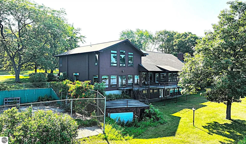 Welcome to an extraordinary opportunity to own one of Lake Isabella’s most iconic executive-style waterfront homes. Situated on 4 continuous waterfront lots on the highly desirable all-sports Lake Isabella. Originally built in the late 1970s with grand entertaining in mind, this home spans over 9,000 square feet of living space. The current owners have begun a second-story addition, originally designed for a luxurious new primary suite (approx 1800ft) ready for your vision to bring it to life. Inside, all-new Pella windows with top-down/bottom-up blinds offer stunning lake views from nearly every room. The main-floor primary suite is a private retreat with two bathrooms, two large walk-in closets, a cozy sitting room, and generous built-in storage. A formal office with custom cabinetry provides a quiet workspace, while the breakfast nook and elegant dining room both offer inviting spaces to enjoy meals with a view. The spacious living room features custom built-ins, a wood-burning fireplace, and natural light streaming from both ends of the home. Just off the living area, a sunroom with three sets of French doors, a sliding glass door, and a wood stove, perfect for year-round entertaining. Upstairs, you’ll find two bedrooms, two full bathrooms, a second kitchen and laundry area, a large bonus living space, and the unfinished new primary suite . The walkout basement features a custom wood-accented fireplace, bar, dance floor, sauna, two additional bathrooms, and an indoor pool, with some updates will make an ideal space for entertaining and relaxing .The sellers have already completed many extensive updates, including a new roof, cement board siding, all-new Pella windows and blinds, new exterior doors, the second floor addition and upgraded insulation. Although many of the major renovations are finished, the sellers were relocated for work, leaving the next owner with a rare opportunity to finish the project and make this remarkable property truly their own.