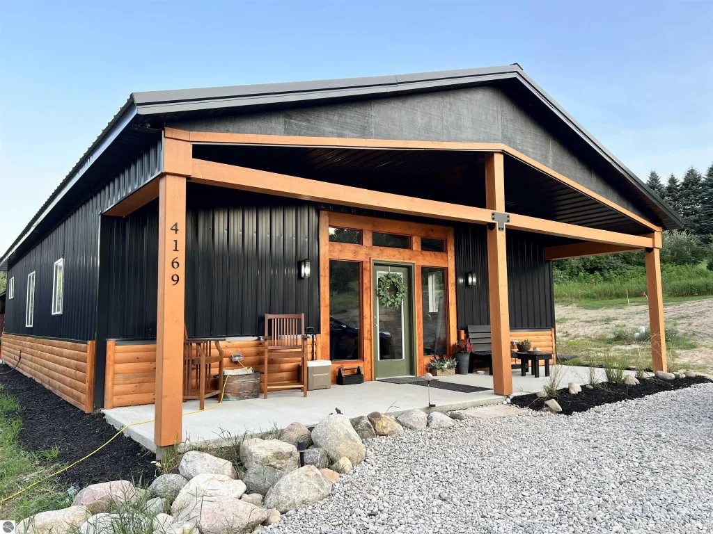 Newer Construction Home built in 2024, Golf Course Frontage on my favorite hole #5 on the Summit Golf Course. Fantastic vista views down the Fairway to the Green. Private 1.2 acre property, open views, nice wooded areas. No H.O.A fees to deal with, short term rental friendly. Unique floor plan could sleep 6-8 comfortably. Open plan, cathedral beamed ceilings, plenty of light, great views. 3 bdrm, 2 nicely appointed baths, Big kitchen with Kraftmade cabinets, stone countertops, built in stainless steel appliances. Covered front porch, enjoy sunset views in the evening, large concrete patio with covered gazebo overlooking Fairway and firepit out back. Large 20x34 foot detached garage set up for overflow bunk house or entertainment area with 2 windows and doorwall. 4 bedroom septic installed. Owner is Licensed Michigan Broker.
