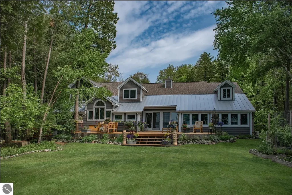 A unique and rare opportunity to own a home of this quality on a setting that is peaceful and awe inspiring. The home sits on the sandy north shores of Lime Lake and is truly a one of a kind offering. Close to Sugar Loaf and Perfectly located in the heart of the Leelanau County, this home boasts the finest finishes and amenities with 3050 sq ft of living space. A gourmet kitchen that is equipped with top of the line appliances, high end cabinets and beautiful counter tops is ideal for entertaining. A full width deck compliments the home with majestic views of the water. The landscaping and exterior grounds are absolutely breathtaking showing the care that one would expect of a home of this quality. The master suite offers exceptional views of the water as well as a large private space bathroom of the highest quality cabinets and and hard surfaces. The second floor is highlighted with a custom hand railing and Alder ceiling. The great room showcases high ceilings and ample space for family and friends to gather. There are many features of this home. See the associated documents for a list of items. Walking through this home is the only way to truly appreciate all the exceptional features the home has to offer.