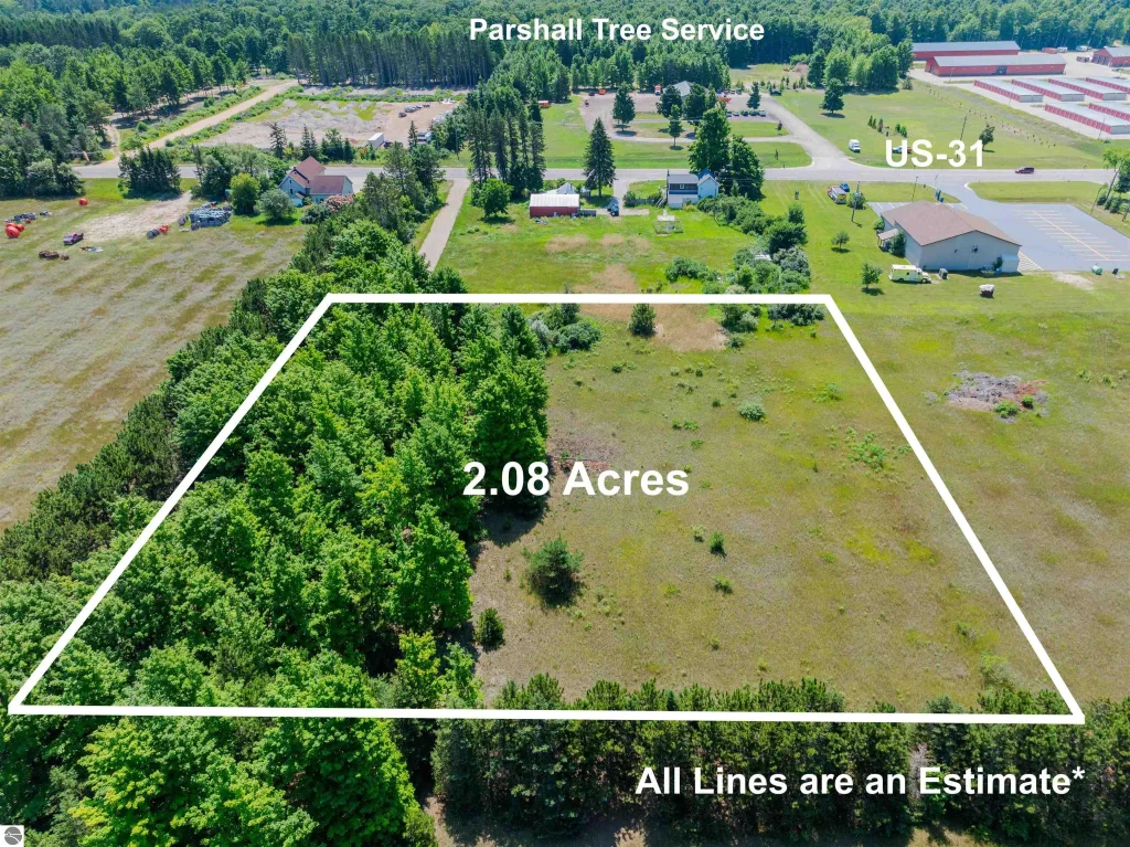 This level, surveyed 2.08-acre lot offers an ideal blend of mature trees and cleared open space, perfect for a future business site. Located along a growing commercial corridor with new developments nearby, the property is zoned commercial and ready for your vision. Split approval has already been granted. A 20-foot-wide gravel driveway has been installed for easy access, and natural gas and electricity are available at the road. The eastern border is partially wooded with maple trees offering privacy. In addition the property is within 500' or the Inland Township Fire Department. Enjoy the freedom of no HOA or association restrictions. Ideal for contractors, small businesses, storage buildings, or retail use with approval from the township.