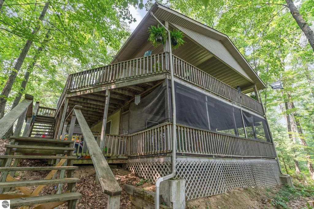Look no more, this is the one! Incredible opportunity to buy a one-of-a-kind waterfront home or cottage fully furnished and ready to enjoy! All of the home's contents (excluding some personal property items to be removed) are negotiable with a great offer! This one has something to offer everyone. The home features three bedrooms and two full bathrooms. Enjoy one of the two covered porches overlooking the water, with the lower level being screened in! The home comfortably sleeps 8-10 people! The main level living room features vaulted ceilings, a wood-burning fireplace, and newer vinyl flooring throughout. The lower level has a third bedroom, a full bath, and a family/ game room with a bunk bed, woodstove, and an air hockey table! The home has seen many upgrades, including a new roof and furnace in the last 12 months. You're not likely to fight for parking, as it has a large level yard at the back of the home. Sutherland Lake is an all-sports lake perfect for fishing, jet skis, boating, or a leisurely pontoon ride! The Harrison area also has plenty to offer, with nearby grocery stores, restaurants, and shopping, downhill skiing or tubing at Snow Snake, a day of off-roading at Rocks and Valleys Off Road Park, or hit the Leota ORV trails for a day of trail riding. This home is not a drive-by! See this one today before it's gone!
