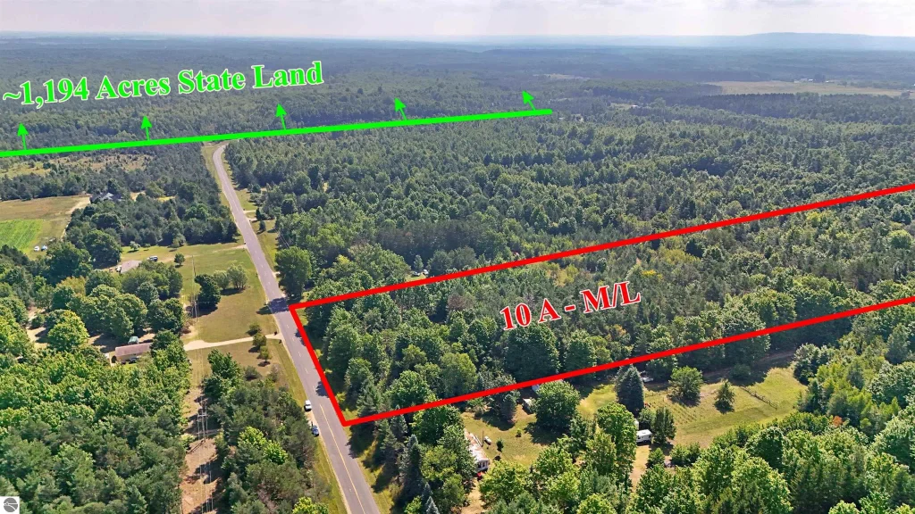 Price improvement just in time for fall! Experience the beauty of the changing leaves and make the most of the outdoor season. Beautifully wooded and nearly 10 acres in size, this property sits in the heart of a true recreational paradise—perfect for every season. Just down the road, you’ll find hundreds of acres of state land to explore, offering endless opportunities for camping, hiking, and outdoor adventure. Tucked off a paved, county-maintained road, it features electric available on site, which should be easy to set up with the electric company, approximately 1/3 acre cleared for camping or recreation, and a dirt driveway/path providing convenient access to the cleared back area. Enjoy the quiet and privacy of being surrounded by mature trees, while still being close to some of northern Michigan’s best destinations, including Crystal Mountain Resort, Crystal Lake, Sleeping Bear Dunes, and Traverse City. Whether you’re looking for a spot to camp now or the perfect site for your future dream home or cabin, this property offers it all. Buyer/Buyer’s agent to verify all information.