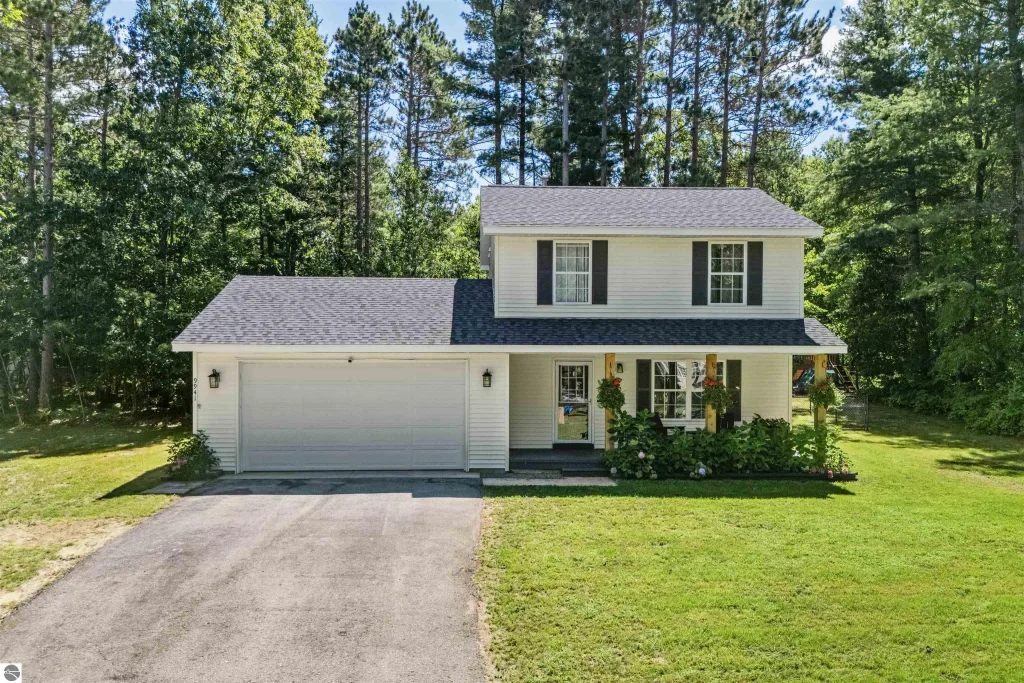 Relax and enjoy the privacy of end of the cul-de-sac living in this beautiful west side neighborhood. This 3-bedroom home is freshly updated with central air and new carpet. The backyard is fenced and boasts a huge gazebo full of possibilities for entertainment, pets, and family enjoyment. The front porch is not only welcoming but a great spot to sit and relax and enjoy the spaciousness of the full acre parcel. Inside you will find stainless steel appliances in the bright and light kitchen, a second-floor laundry room, and finished basement. The 2-car garage is attached, heated, and insulated, for a great workshop or keeping vehicles warm and dry in winter. This home is move in ready and worry free! Located just minutes from miles of state land for hiking, biking, and fishing, plus an easy drive to shopping, dining, and Munson Medical center.