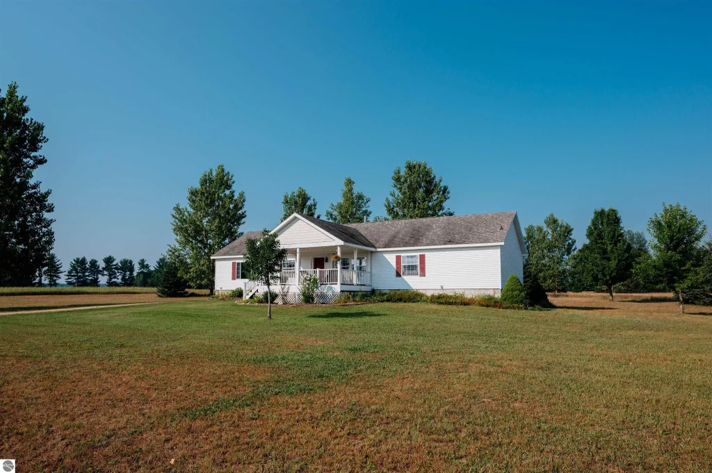 Wide open space and true country living. With over 3,500 finished square feet, this five-bedroom, three-bath home delivers room for everyone—multiple living areas, a theatre room, and both gas and wood-burning fireplaces for cozy nights in. The main living room features surround sound and custom built-in bookshelves, while the primary suite offers a jetted tub and dual vanity. Outside, five acres set the stage for real country life. A whole home generator provides peace of mind year-round, while a pole barn and a shed that could house chickens or small livestock are ready for work or hobbies. A walking path winds through the back field, framed by wide farm views and peaceful sunsets. This is space, comfort, and country freedom—all wrapped into one property.