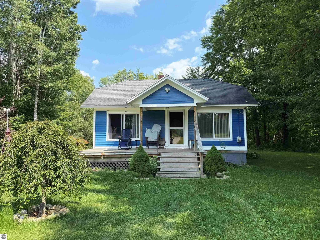 Looking for a Quiet Getaway? This simply adorable 2-bedroom, 1-bath home is nestled in a peaceful, private setting and offers a little bit of everything! Step inside and discover a sunken living room with a cozy fireplace—perfect for those chilly evenings—and sliding glass doors that open to a spacious back deck overlooking scenic Maple Creek. There's plenty of storage in the basement, plus a detached pole barn ideal for boats, ATVs, or hunting gear. A separate small garage offers additional space for your outdoor equipment and tools. Located just minutes from the Big Manistee River and near thousands of acres of State land, this is a dream spot for hunters, RV riders, or anyone seeking tranquility and nature. Don't miss your chance to own this charming little property!