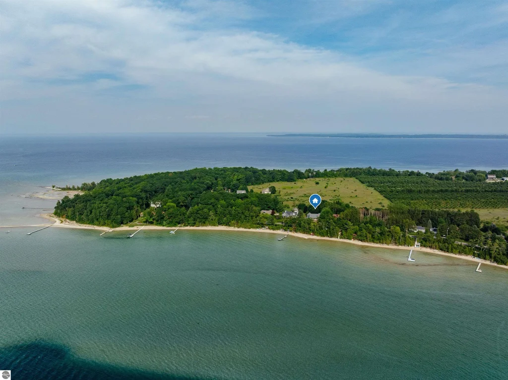 Located on the coveted Stony Point Peninsula in Suttons Bay, this rare waterfront property offering boasts over 105 feet of private Grand Traverse Bay protected frontage on Suttons Bay, with sparkling blue / green waters and breathtaking sunset views. This three-bedroom, two-and-a-half-bath home features a spacious main-floor primary suite, an expansive living room designed for gathering, and a large chef’s kitchen perfect for entertaining. The attached two-car garage provides convenience, while the very large backyard creates room for recreation and relaxation. The grounds are highlighted by masterfully designed gardens and landscaping planned thoughtfully with nature in mind, offering a serene backdrop to everyday living. This is a unique opportunity to enjoy year-round comfort and beauty on one of Northern Michigan’s most desired peninsulas.