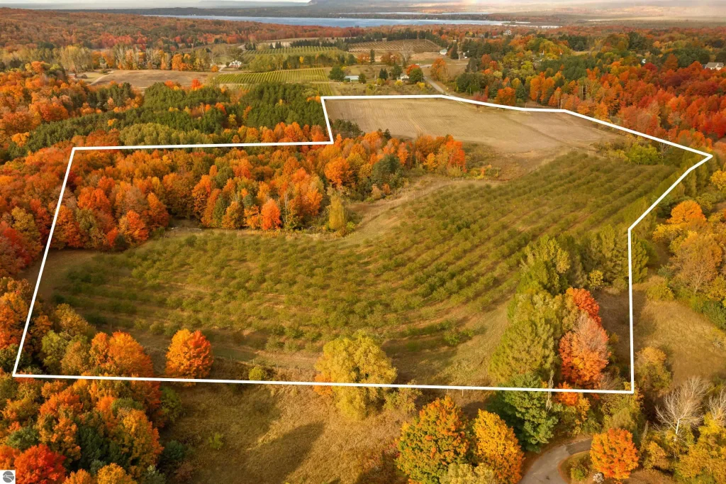 Rare chance to own 27 acres of pristine land in the enchanting hills surrounding Crystal Lake in Northern Michigan! Level areas, ready to build with a mix of hardwoods and tart cherry trees, this exceptional 27-acre parcel features stunning rolling terrain that perfectly balances privacy and convenience, with easy access to both the town and the lake. Well and electric already installed on property, build multiple homes, develop a planned unit community (PUD), continue cherry farming or create your own private estate in this idyllic setting, the opportunities are endless! Nestled between Crystal and Big Platte Lake, this property boasts a breathtaking ridge, offering panoramic sunset views. Zoning designated as R.P. 2.5, allows the flexibility for a minimum of 2.5 acres per lot or the potential for a PUD. This is a rare opportunity to invest in a prime location that combines serene living with exceptional accessibility. Available splits will transfer with the property.