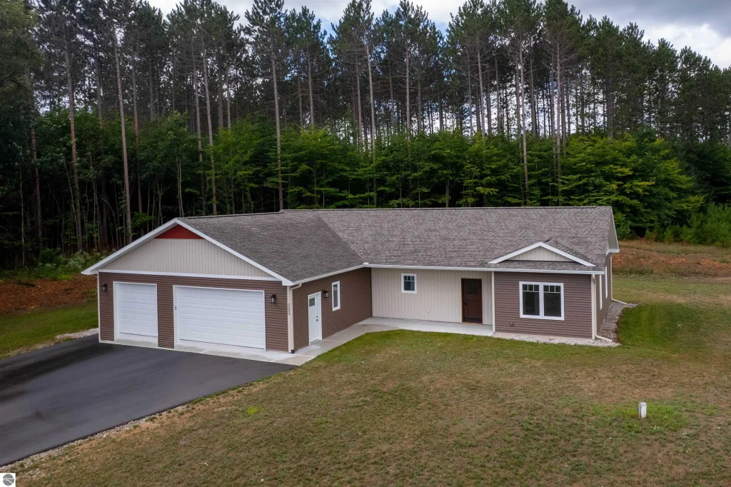 This expertly finished residence situated on the outskirts of Kingsley in Timber Ridge Estates demonstrates superior construction and meticulous attention to detail. Positioned on 2.59 acres, it presents a unique chance to experience tranquil rural life with contemporary amenities. The one-story design features a secluded master suite, distanced from two secondary bedrooms. Spacious, airy common areas boast 9-foot ceilings, oversized windows, and peaceful forest vistas. The enhanced kitchen boasts 42-inch cabinetry, granite surfaces, a center island, abundant storage, and premium appliances. Notable features include solid wood entryways, premium vinyl plank floors, a utility/washing space, and a sheltered back deck. The large, insulated triple garage is complete with a 50amp connection. With buried utilities, including fast internet, and minimal deed limitations, space exists for gardening or future structures. Timber Ridge Estates provides large lots in a serene, well-maintained community.