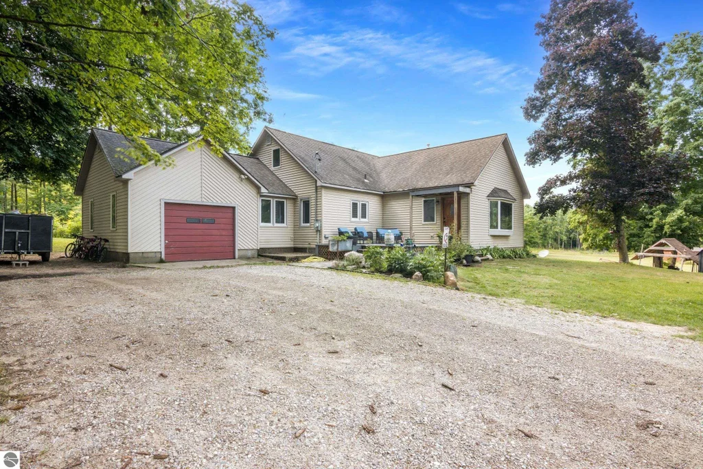 Looking for space, privacy, and that connection to nature? This one-of-a-kind property situated on 28.8 acres offers just that. Tucked among towering trees with Cedar Creek flowing through the property, it’s the kind of place where every day feels like a getaway. Trails weave through the land, inviting you to walk and take an adventure. Wildlife is a constant companion here—you might spot whitetail deer, catch porcupines lumbering by, or hear the songs of countless birds. And with 200+ acres of State Land across the road, your opportunities for hiking, hunting, and year-round recreation abound. Inside, the home has timeless charm. A newly finished upstairs bedroom, complete with updated insulation and windows, feels bright and welcoming. Wood floors add character and the freshly painted kitchen and living spaces feature brand-new appliances. Just off the back of the home, the four-season room is in the finishing stages—ready to become whatever you need most, whether that’s an extra bedroom, Expanded primary, hobby space, game room, or a cozy den for quiet evenings. The property offers freedom and flexibility. Dream of growing your own food? The land is ready for gardens. Want chickens? A coop is already in place. A versatile outbuilding adds even more potential—transform it into a workshop, studio, or private hideaway. Every inch of this property is waiting for you to make it your own. And while the setting is peaceful and private, convenience is never far away. With everything Leelanau County just outside your door, and Traverse City just 20 minutes away, you’ll have easy access to all this area has to offer. Whether you’re seeking a year-round home or a private retreat, this escape brings together comfort, charm, and endless possibilities. Come see where your story begins!