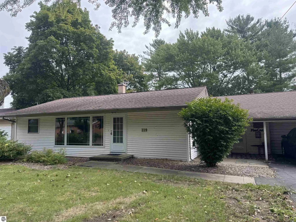 Cozy three bedroom in Shepherd. Fenced yard, metal building, one car attached garage/workshop, fenced yard, family room, appliances, some newer flooring. One level living in a quiet village setting.