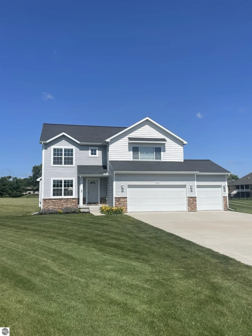 A must see 4-bedroom, 2.5-bath home with a 3-car garage, perfectly situated on a cul-de-sac in Cornerstone subdivision! Built in 2019. The main floor features a spacious kitchen, upgraded stainless steel appliances, large island, pantry, and ample soft close cabinetry. Living room features a gas fireplace, making it cozy for family time. while a versatile dining room/home office and a half bath . On the upper level you will find four bedrooms, including a primary suite, along with a laundry room and two full baths. The finished basement offers added storage space, family room, and bath. Outside, enjoy a beautifully landscaped lot with a full irrigation system and a deck perfect for relaxing or entertaining, close to shopping, CMU , municipal water, and sewer. Agent owned/ approximate measurements, must be verified by buyer