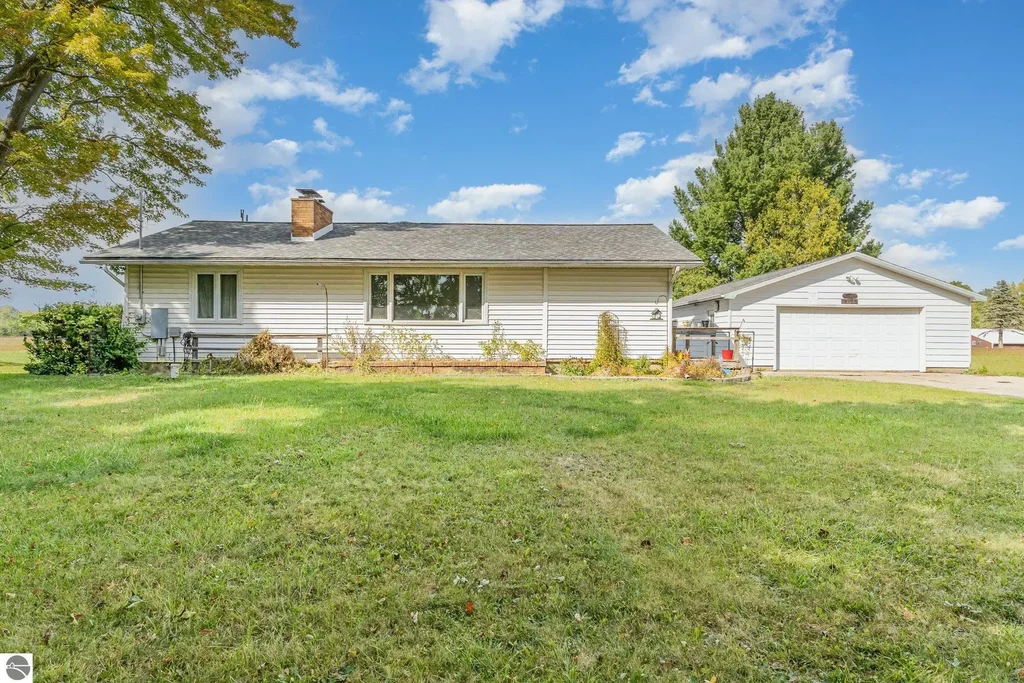 This delightful ranch-style home harmonizes rural tranquillity with the convenience of nearby town amenities. Set amid sprawling greenery and mature trees, this sunlit abode features three well-appointed bedrooms and two stylishly functional bathrooms. The heart of this home is its spacious kitchen, where warm wood cabinets and expansive windows create a bright atmosphere for culinary delights. Adjacent, the welcoming living room offers a serene view of the vibrant landscape and a charming fireplace, perfect for cozy evenings. A standout feature is the generous 26x36 detached garage, ideal for storage or a creative workshop space. Additionally, a quaint outbuilding and metal shed enhance the property's versatility. Whether you're working from home or seeking a peaceful retreat, this home provides ample space to suit your needs. Bask in the serene, rural charm of this captivating property and embrace a lifestyle of comfort and simplicity.