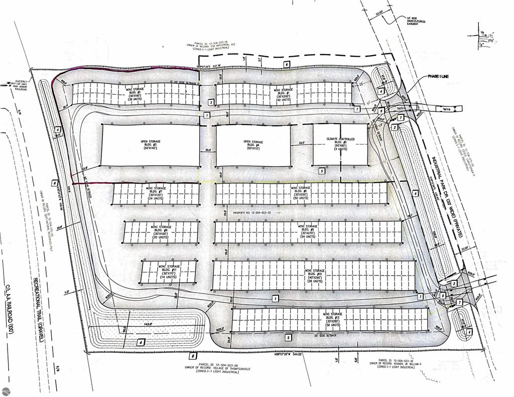 Prime opportunity for investors and developers: this industrial zoned, 5-acre parcel is a fully approved, shovel-ready self-storage development site. All engineered plans, schematics, and municipal approvals convey, with entitlements in place for 358 storage units plus designated open storage. Much of the legwork has been completed, offering significant time and cost savings for a buyer ready to build. The property itself is level and well-suited for construction, ensuring an efficient start to development. A 30 x 48 pole building with fenced area is included and currently leased, providing immediate cash flow during the construction stage—or it can continue as a long-term supplemental income stream. With rising demand for storage facilities, this property combines location, zoning, approvals, and income to present a rare investment opportunity. Whether you proceed with the approved project or adapt it to other light industrial uses, this parcel offers a streamlined path from acquisition to operation.