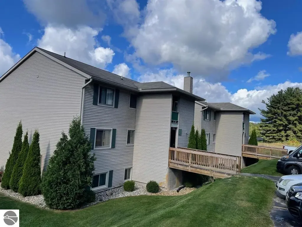 Well maintained updated (2019) 2 bedroom/1 bath Condo plus Garage on the west side next to the coveted Crown Golf Course. Beautiful views and privacy along with a garage with ample storage space and onsite guest parking. Open layout with slider to patio and lush lawn to enjoy. New Roof and Decks 2025. Convenient to MMC, downtown TC, golf, Leelanau Co. plus walkable to 3 restaurants and a convenience store. Updates since 2019: Laminate Flooring, Carpet, Kitchen Cabinets, Appliances, Backsplash, and Front Door with Smart Keypad. HOA Fees include: Heat, Water, Sewer, Snow Removal, Lawn Care, Outside Building Maintenance, Liability Insurance, and Fire Insurance. Enjoy the ease of Condo living!