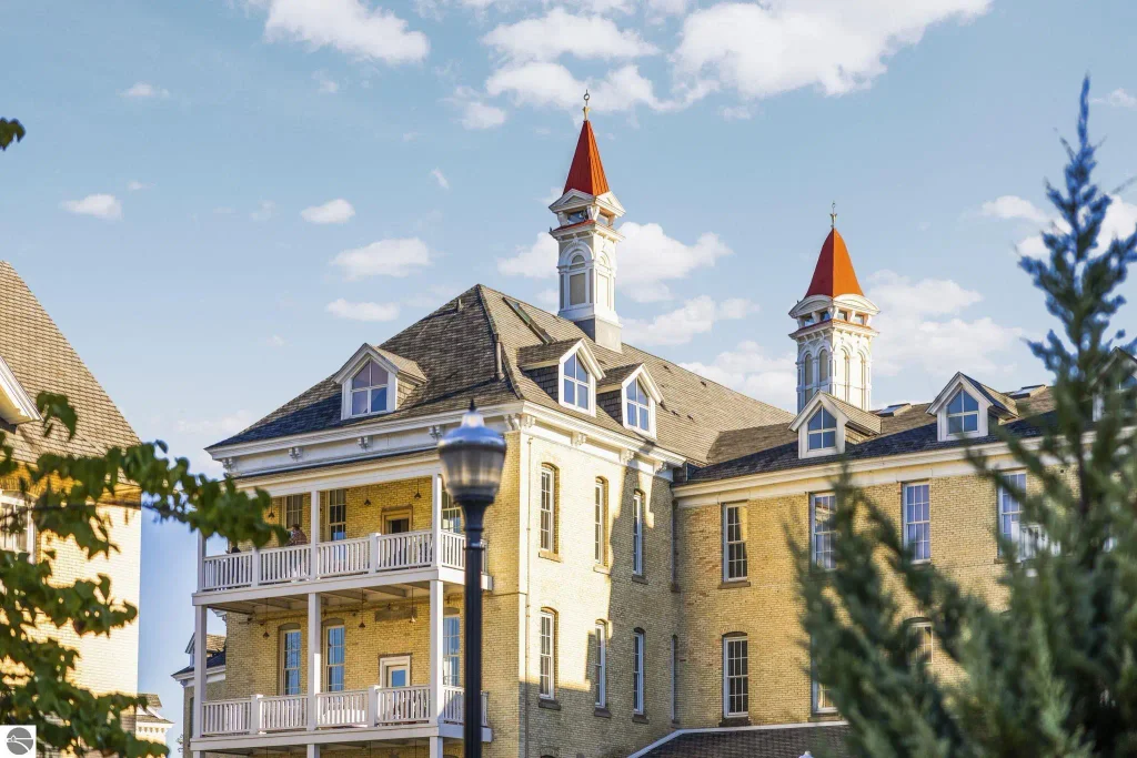 Welcome to Traverse City’s iconic Village at Grand Traverse Commons. This industrial-chic, three-level loft is located in Building 50, the heart of this historic and highly sought-after destination. With tall windows, skylights, and original architectural details, the space is filled with natural light and timeless character. The main level features a spacious open-concept kitchen, dining, and living area with soaring ceilings and exposed beams that highlight the lofted design. A striking spiral staircase leads to an airy mezzanine overlooking the original dormer windows and the vibrant village below. Elevator access to both the main and second floors adds convenience that’s rare in The Village - making everyday living or guest stays easier than ever. On the upper level, the expansive primary suite offers a private retreat with a full bath, sitting area, and plenty of space to relax. This unit may also qualify as a short-term rental (STR), offering an incredible opportunity for flexible use or investment potential - buyer to verify with HOA and city zoning. Surrounded by boutique shops, cafes, trails, and year-round events, The Village at Grand Traverse Commons is where historic charm meets modern living. Don’t miss the chance to own a unique piece of Traverse City in a community like no other.