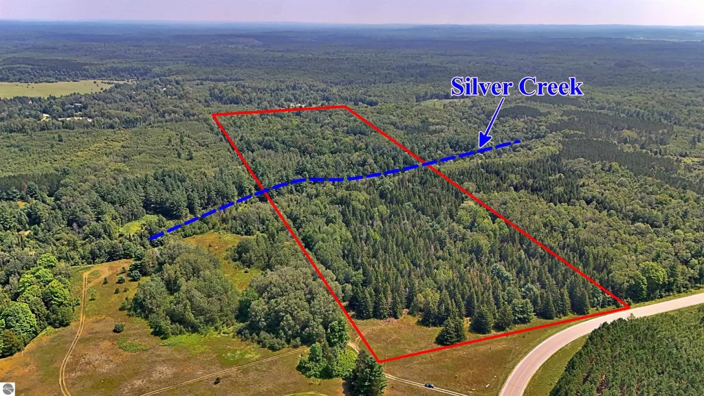 PREMIUM PROPERTY ALERT! Discover your dream escape on this stunning piece of land in Wexford County, just under 2 miles from Grand Traverse County. This hard- to-come by wooded parcel boasts mature trees and is bordered by state land on three sides, ensuring privacy and abundant wildlife. Silver Creek meanders through the property, adding to its natural charm. Perfect for hunting enthusiasts or those seeking the ideal spot for their forever home, this land offers unparalleled opportunities. Property has electric run along the North property line. All this is conveniently located off a blacktop road, combining serenity with accessibility.