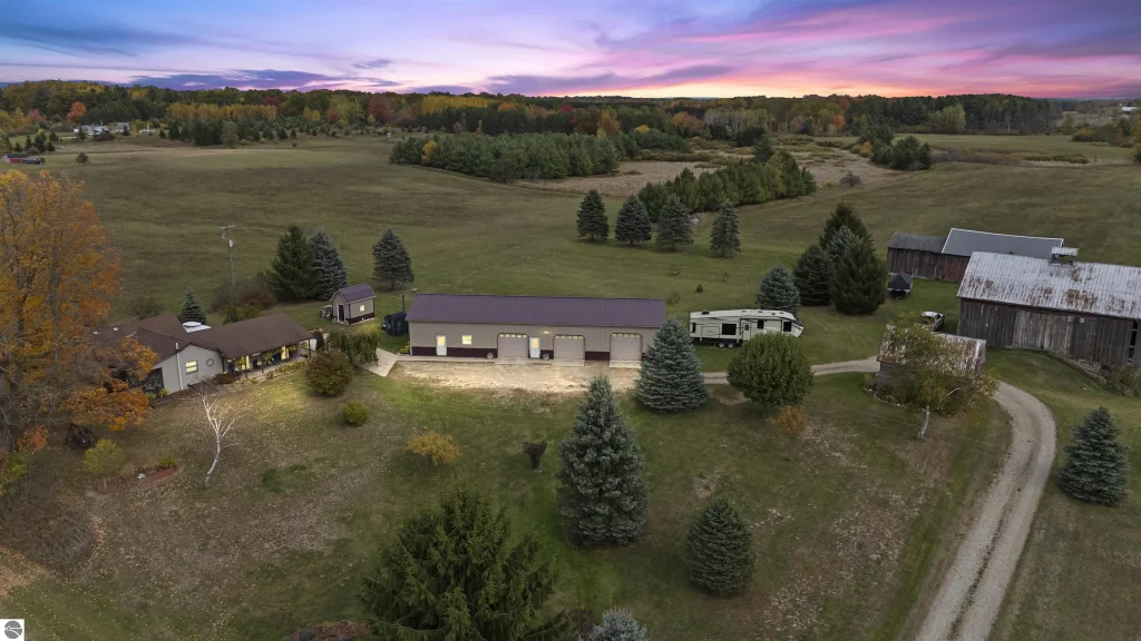 Your Dream Hobby Farm Awaits! Discover the perfect blend of country charm and modern convenience with this beautiful 40-acre farm located just minutes from town and the Muskegon River. This updated 2-bedroom, 1-bath ranch home offers peaceful living with all the right upgrades, including an outdoor wood boiler for efficient, cozy heat all season long. Step outside and enjoy not one, but two covered porches, plus a private deck off the master bedroom—ideal for your morning coffee or evening sunsets. The land features mostly open acreage perfect for farming, gardening, or pasture, along with pockets of woods offering excellent hunting opportunities and natural beauty. A newer 40x80 pole barn is a game-changer—complete with a large finished room and bar area, making it the perfect space for gatherings, hobbies, or a workshop. Several additional outbuildings provide even more storage and versatility for animals, equipment, or toys. Whether you're dreaming of a homestead, hunting retreat, or hobby farm, this property has it all—wide-open space, modern comforts, and an unbeatable location. Don’t miss your chance—properties like this are rare!