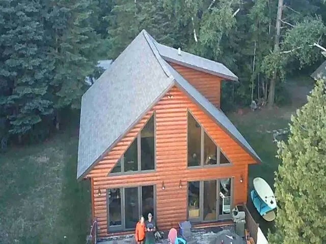 Frenchman's Lake-Village of Trout Lake, Located in the gated community of Wegwas. Beautiful 3-bedroom, 2 bath, custom-built year-round log-sided home with vaulted ceilings, maple cabinets, propane fireplace, pine cabinets, and tongue and groove cedar and pine. There is a detached 2.5-car garage with a fitness room or bedroom for guests. Spectacular open lodge concept. Mature trees, sandy beach, dock & good fishing. SPORT LAKE. THERE ARE RESTRICTIONS. You can kayak or paddle board from Frenchman's Lake to Big Trout Lake.