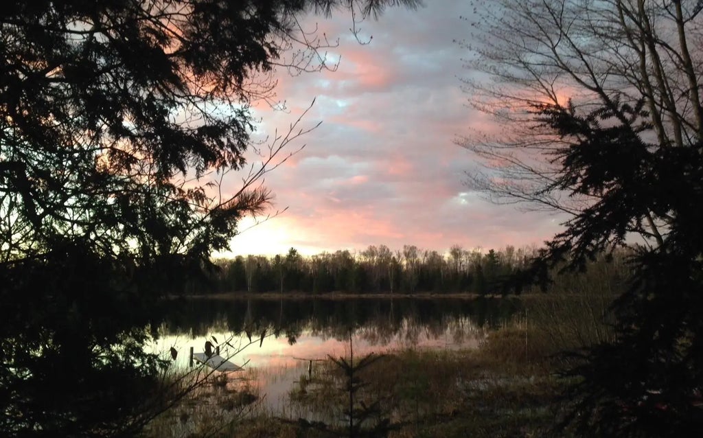 PEACE AND QUIET! 1,000 ft. of water frontage with bogs & iris glades on beautiful little Round Lake in Michigan's Eastern Upper Peninsula. Peaceful retreat and wildlife refuge of natural four-season beauty: 54 +/- acres of woodland, rock formation of the Niagara Escarpment with Karst features, such as an impressive sinkhole with a stream trickling from a beaver dam. The wide mix of trees includes maple, beech, hemlock, pine, spruce, cedar, cherry, & birch. This secluded estate comprises 2 furnished cabins, and a 120 sq.ft. ''Lillstugan''; a bathhouse, outdoor kitchen, woodshed, chicken coop and tool shed make up the rest of the outbuildings and would make for a spectacular kids camp or family retreat. The cozy cabin was remodeled in 2006-2009 and is lived in year-round. The second lakeside cabin/bunkhouse was built in 2011 and lies appx. 300 ft away from main camp. This serene location allows for off-grid living at its finest. Access to fast Internet is by smartphone or laptop via hotspot. Solar installation with new lithium-ion battery packs provide power w/generator as back-up. An abundance of hardwood feeds the wood stove, the primary source of heat, but there is also a propane ventilated wall heater. The large bedroom and galley kitchen in the main cabin overlook the lake as does the open concept dining/living room.