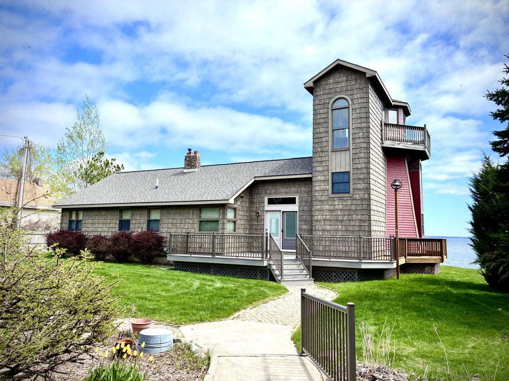 ''Lighthouse'' custom home on the shores of majestic Lake Huron! Home boasts 103' frontage and offers panoramic views of the City of Alpena, sail boats, freighters, cruise ships and abundant wildlife. This unique home has unexpected features like having your own Light House Tower. Enjoy two primary suites. One with cozy gas fireplace. Spacious lakeside great room also with gas fireplace. You will love the walk-out to the full wrap around decking. The two car garage is built to mimic home light house style. Partridge Point is a desirable neighborhood minutes from town & bike paths. It features a paved road, city water and natural gas. This home is a one time opportunity, don't miss out!