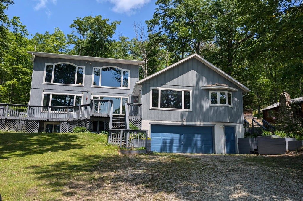 Lots of nature, water sports and wildlife on this private road with lots of frontage on Avery Lake. The custom home offer lots of natural light & large lake viewing windows. Granite counters, tile floors and mastersuite on the upper level with gorgeous views. The home was remodeled and added onto in 1999. A new heat pump was installed in 2025 for very efficient heat and AC. The pole barn is 50 x 32' and has a cement floor and lots of electricity. The terraced perennial beds are beautiful and pretty established. Avery Lake is a spring fed All Sports Lake south of Atlanta with pristine clear water and great fishing, boating and swimming right on your own beach.