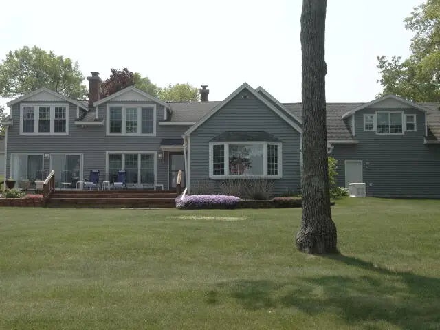 Invest today in your staycation home nestled on 1.5+/- acres with 248 ft of waterfront on all sports Van Etten Lake. This majestic beauty boasts impeccably landscaped grounds, with flowering shrubs, towering trees & perennial flowers. The rolling hill bodes well for privacy and that feeling of serenity. Beautiful stairway & paved sidewalk seems like a fairy tale as you walk up to the front door. Entering the home you will see old world charm meets modern amenities & a direct view of the Lake. Large window walls give you amazing views in every room. Gorgeous Cherry cabinets in the Gourmet Kitchen, topped with granite. Premium stainless Appliances. Gleaming hardwood Floors abound. Unique tilework and architectural drywall is amazing. Dock & Boat Hoist stay. Come play on the Sunrise Side!