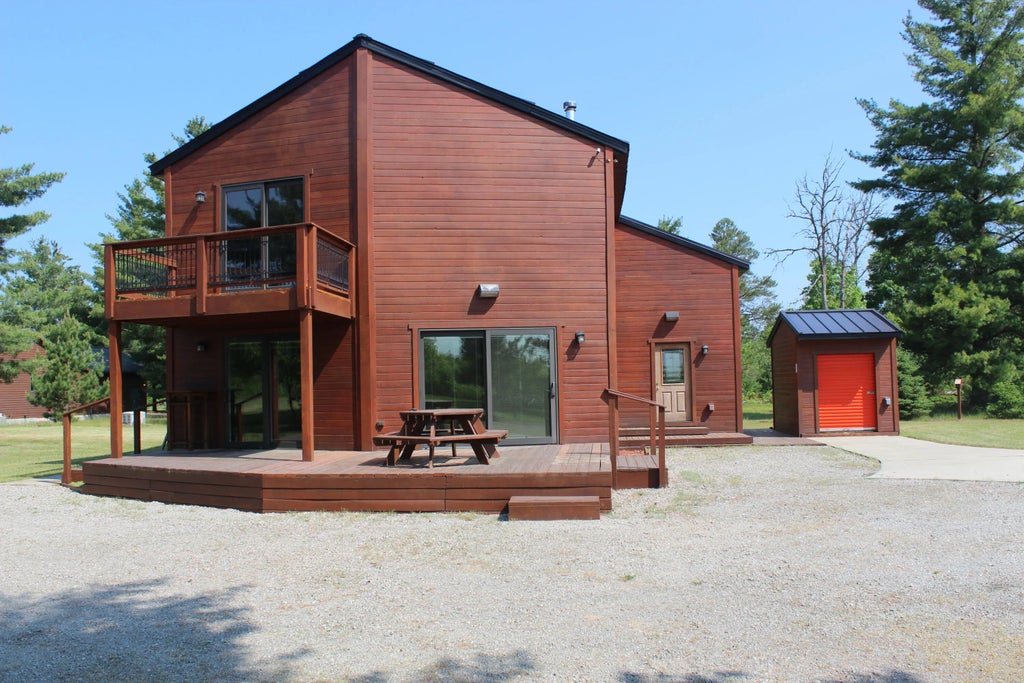 Welcome to 3009 Northeast Trail! This unique, beautifully designed and well maintained property is located in a quiet Northern Michigan Association with waterfront access to Big Creek and offers several amenities. This modern home offers indoor and outdoor living at it's best! Pella and Anderson Windows, cedar siding, metal roof, oak floors, built in gun safe and security system are just a few items this home boasts. Kitchen features quartz countertops and stainless steel appliances. Enjoy the views from the door walls in the living room while ''nestling in'' by the cozy wood burning stove. Expansive upper balcony (8 x 12) & lower deck (13 x 26) perfect for wildlife viewing, overlooking state land and entertaining with family and friends. Large spacious 30 x 40 pole building perfect for storing your recreational items or enjoying your favorite hobbies. Gravel driveway, beautiful natural landscaping, complimentary exterior colors and unique architectural design offer amazing curb appeal. Perfect location for your forever home or Up North Retreat. Be sure to schedule your showing today, this incredible property won't be available long!