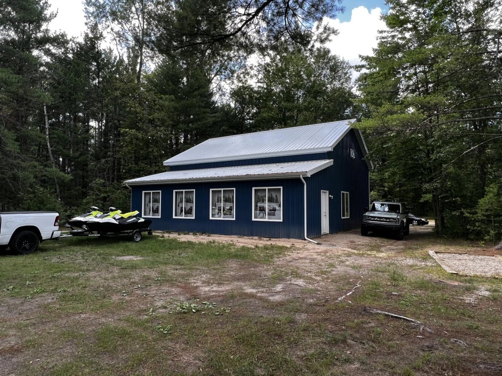 This residential lot features a 40x36 pole barn with eye-catching blue siding and white trim. The barn includes a 30x36 main section, complemented by a 10x36 lean-to with large double-pane windows. The barn has been framed for two small apartments, each designed with a living room/kitchen, one bedroom, a bunkroom, and a bathroom. Upstairs, the 30x36 storage area is easily accessible via a stairway. The property is equipped with an artesian well and an electrical setup that includes an exterior camper hookup. It boasts frontage on both Oak and Norway streets, allowing for convenient pull-through access, and features a spacious pad suitable for campers or motor homes, with gates at each entrance. A four-corner survey is included, and a public access boat ramp is located just a block away.