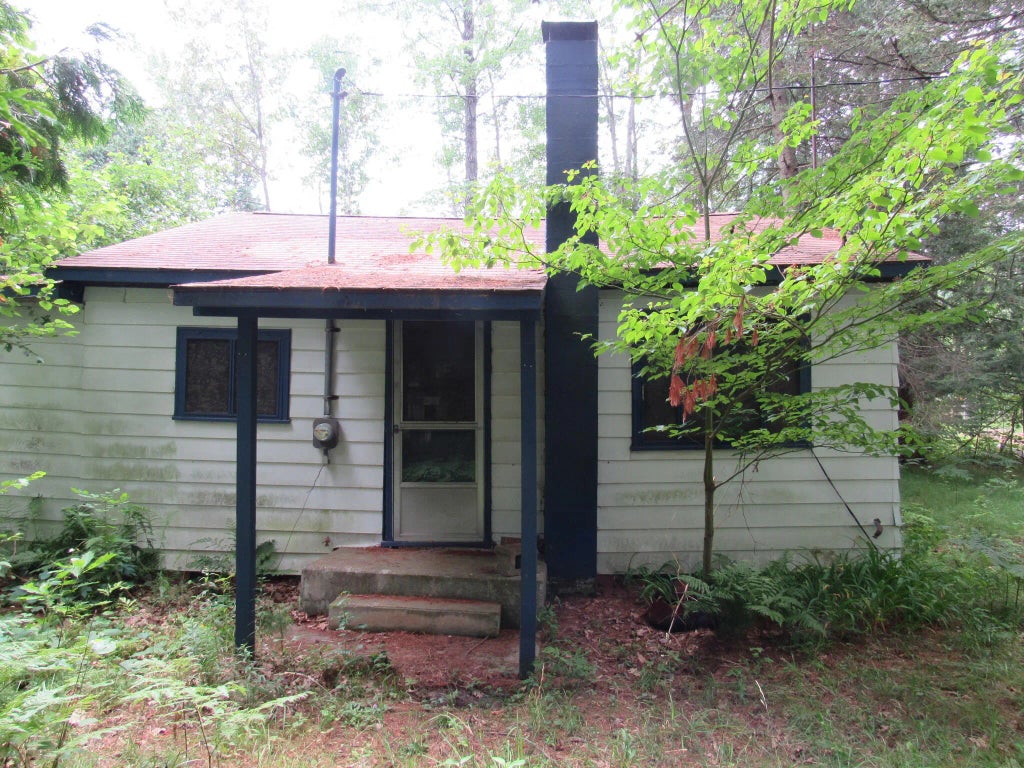 Fixer-Upper Cabin for Sale - Gladwin, Michigan. Cabin is ''AS IS'' - No Utilities On. Cozy 2-bedroom, 1-bath cabin located just off M-30 in Gladwin, Michigan. 575 sq ft of living space. Lot size: 0.15 acres (66 x 100). Needs new ceiling and flooring throughout. Exterior and roof are in good condition. Utilities: Well, septic, and electric at the meter. Heat had been fuel oil. Has an electric fireplace but would need to put in new heat system. The property is wooded on the back and one side, and sits across the street from Dollar Lake. Located near ''The Camp'' restaurant and close to state land, making it a fantastic base for hunters or outdoor enthusiasts. Seller would entertain Land Contract at 35,999 with $12,999 down, 10% interest, $650 per month with a 4 year balloon