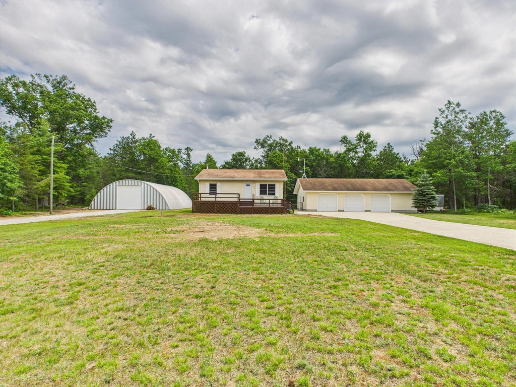 Beautifully maintained home on 5 acres just minutes from downtown Grayling! This 2-bedroom ranch is perfect as a year-round residence or an Up North retreat. The home features a full basement that includes an additional living area complete with a cozy wood stove ideal for relaxing or entertaining in all seasons. Outside, you'll find a 24x48 detached garage that is insulated and heated, a spacious 40x55 Quonset hut for storage or hobbies, and a cyclone-fenced backyard. Enjoy easy access to the AuSable River, Snowmobile Trail #47 and the Lovells Trailhead. A must-see property with so much to offer! Road is maintained by Jack Miliken.