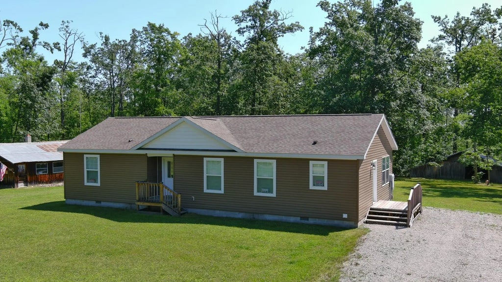 This 3 bedroom, 2 bathroom home was built in 2018 and is being sold COMPLETELY furnished. This is a turn-key property! Open concept living. Electric fireplace in living room makes the room feel extra cozy. Custom blinds on all windows. One level living with a split floor plan (primary bedroom and bath separate from the other two beds/bath). Laundry is conveniently located off the kitchen. Storage galore in the kitchen. Beautiful, high-end furnishings and tasteful decor. This home is sitting on 5 beautiful acres (330x660) in Rust Township surrounded by large parcels of land. No visible neighbors. Excellent hunting! Trails throughout the property will lead you to 2 elevated, heated blinds. Enjoy 2 outbuildings for storage. Propane forced-air furnace, well and septic. County maintained road