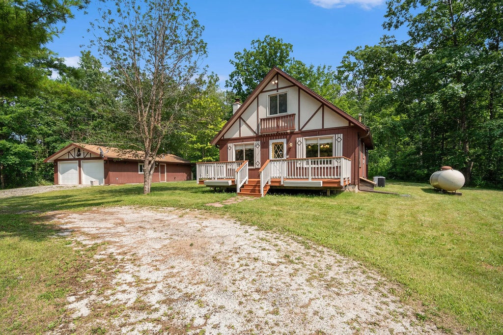 Secluded 3 bedroom, 2 bath chalet on 6 acres. Close to ORV trails and state land, this is the perfect up north getaway or year round residence. Features include central air, new seamless gutters and new furnace. The garage is big enough for all of your toys plus a workshop! Added plus is wheelchair accessible ramp and bathroom/bedroom access. Come experience the serenity of up north living.